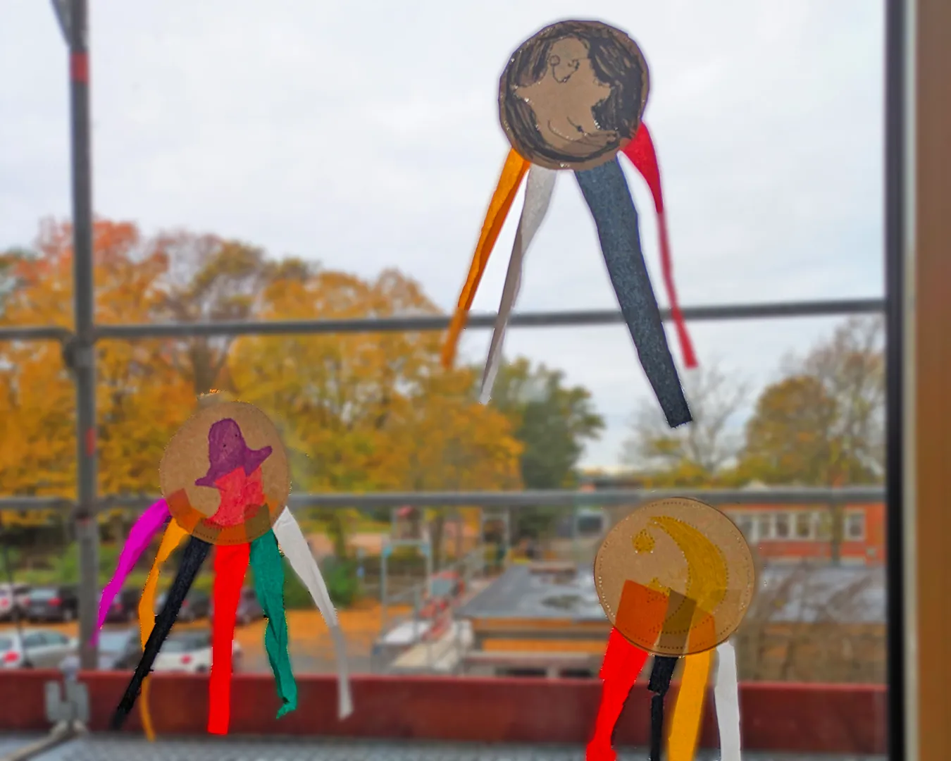 Die Erstklässler haben im Kunstunterricht gruselige Fensterdeko gebastelt.