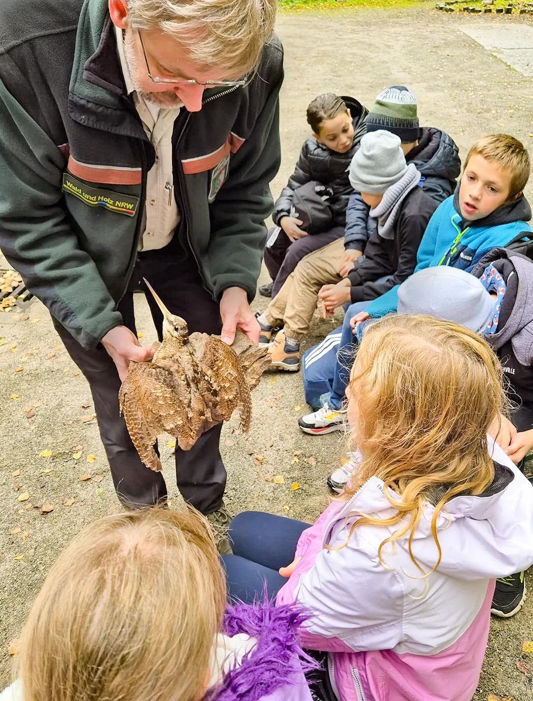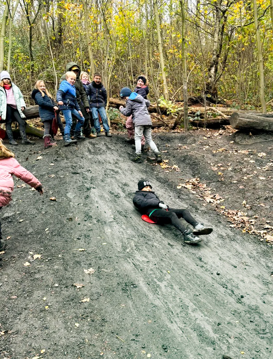 An der Forststation konnten wir ausgestopfte Tiere streicheln. Der Förster hat uns auch erzählt, dass er für das Land NRW arbeitet. Er hat uns erzählt, dass in diesem Wald besondere Bäume stehen. Wie zum Beispiel die Buche oder der Ahorn. Wir sind auch zur Waldrutsche gelaufen. Dort durften wir dann mit Rutschbrettern runterrutschen. Wir durften auch einen ausgestopften Fuchs anfassen und viele andere Tiere. Der Förster hat uns auch erzählt, was die Tiere essen. Am Ende waren die meisten Kinder traurig, dass wir gehen mussten.