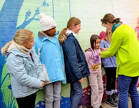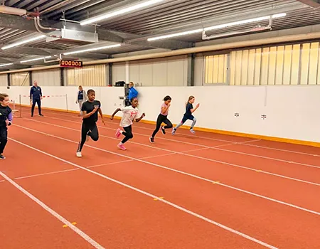 Besonders zu erwähnen sind Moussa Traore (4b), Mary Okundaye (4c), Greta Junker (4b) und Lena Schröder (4c), die sich in ihrer Altersklasse für den 50m Endlauf qualifiziert haben. Moussa sicherte sich dabei einen starken 4. Platz in 7,97 Sekunden und Mary tatsächlich den Sieg bei den Mädchen in 8,12 Sekunden.