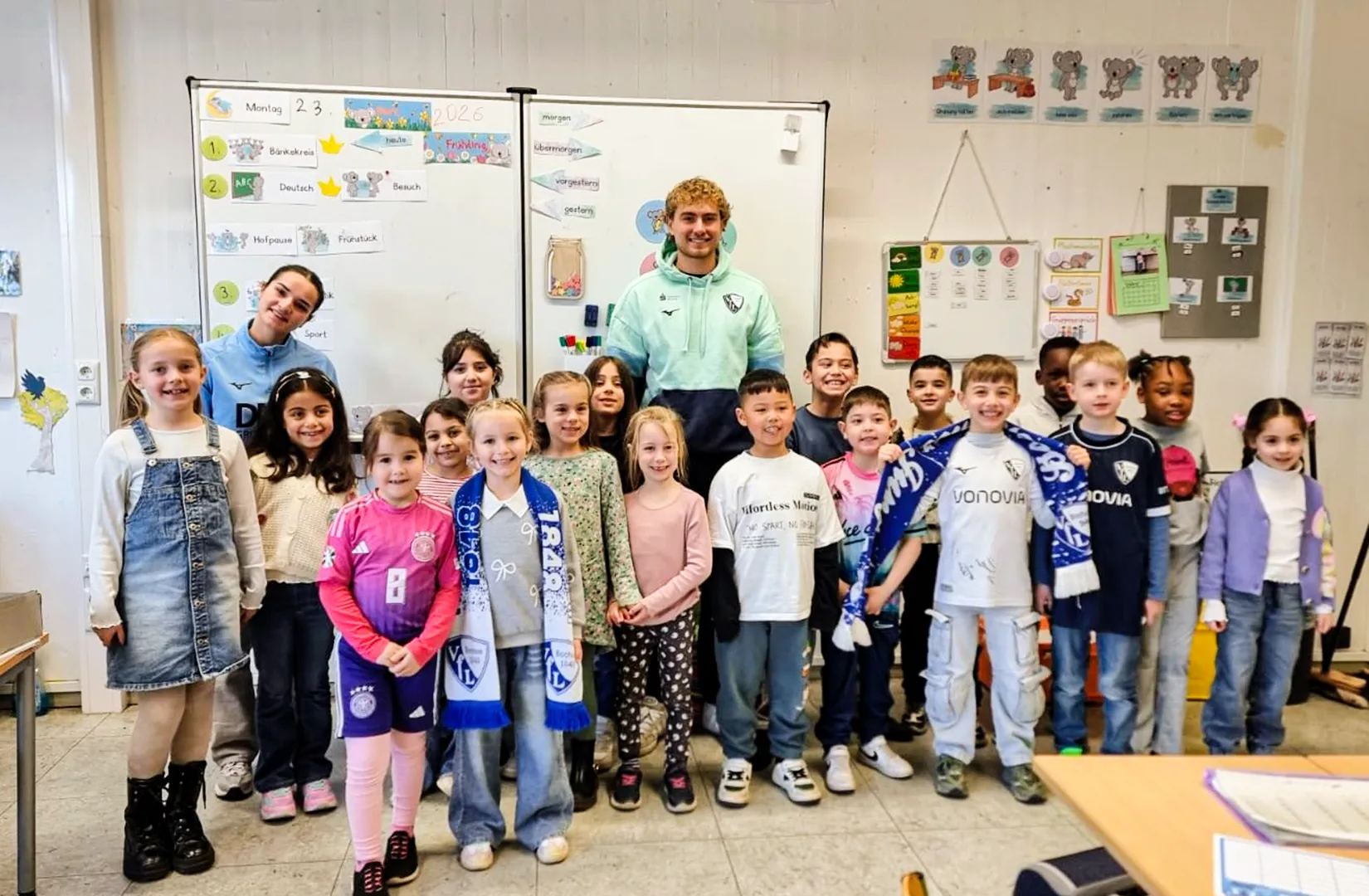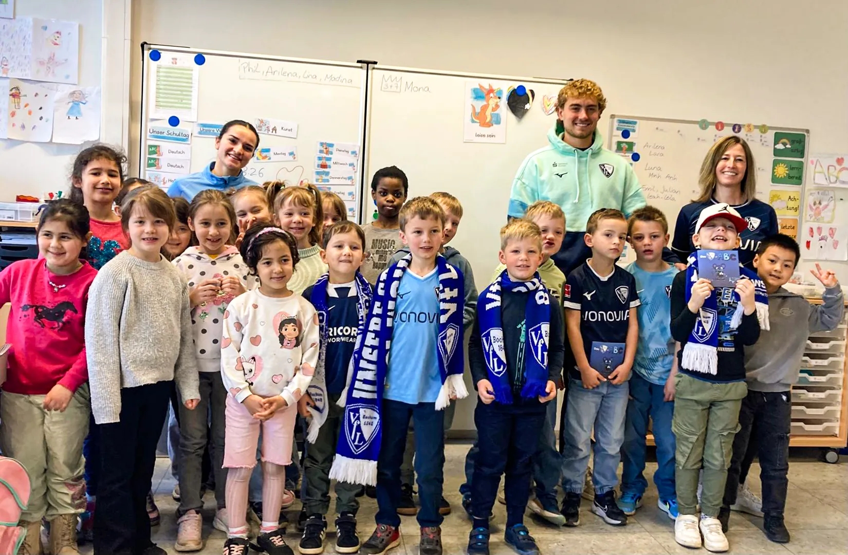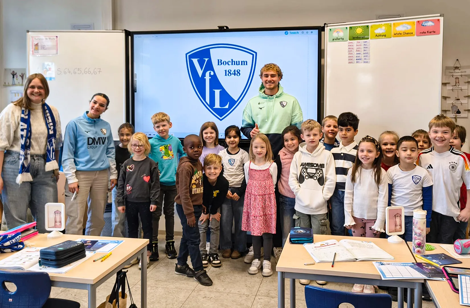 Große Aufregung herrschte vor den Osterferien in den ersten Klassen unserer Schule: Spieler des VfL Bochum waren zu Besuch.