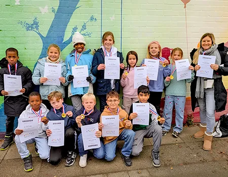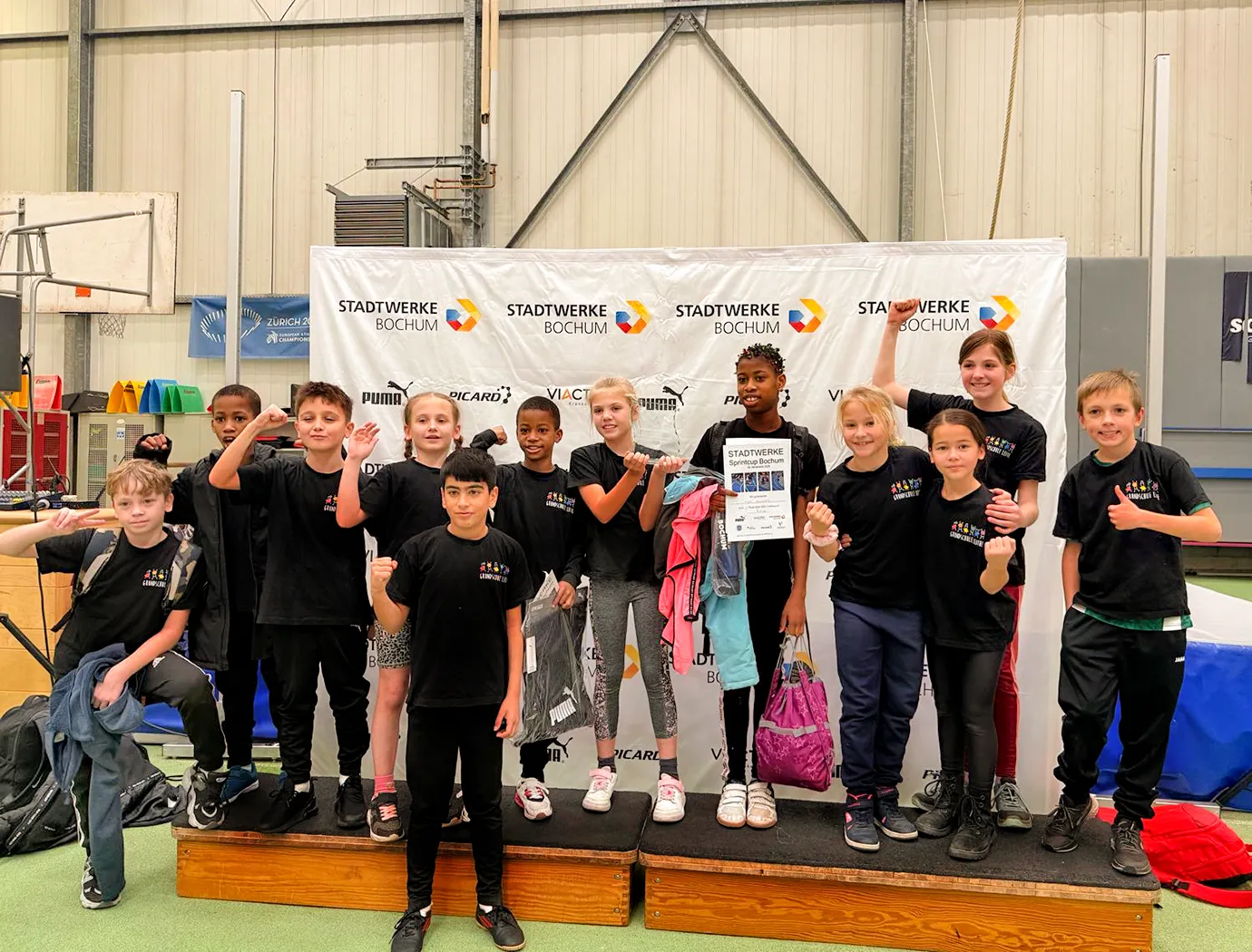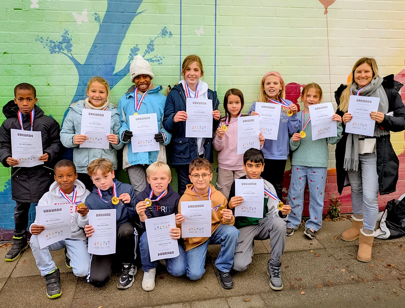 Nach unserem Sieg im Jahr 2023 konnten wir in diesem Jahr den Pokal wieder zurück an die Grundschule Leithe holen. Die schnellsten Jungen und Mädchen unserer Schule schafften es, sich gegen 13 weitere Grundschulen aus Bochum in der 10x20m Pendelstaffel in 58,59 Sekunden durchzusetzen.