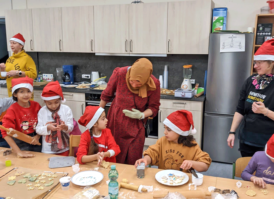 Wir freuen uns darauf, die leckeren Plätzchen in unseren weihnachtlich geschmückten Klassenräumen essen zu können.